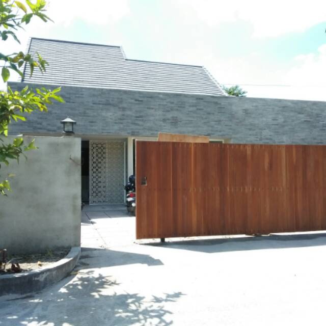 Pagar kayu dengan pintu gerbang geser